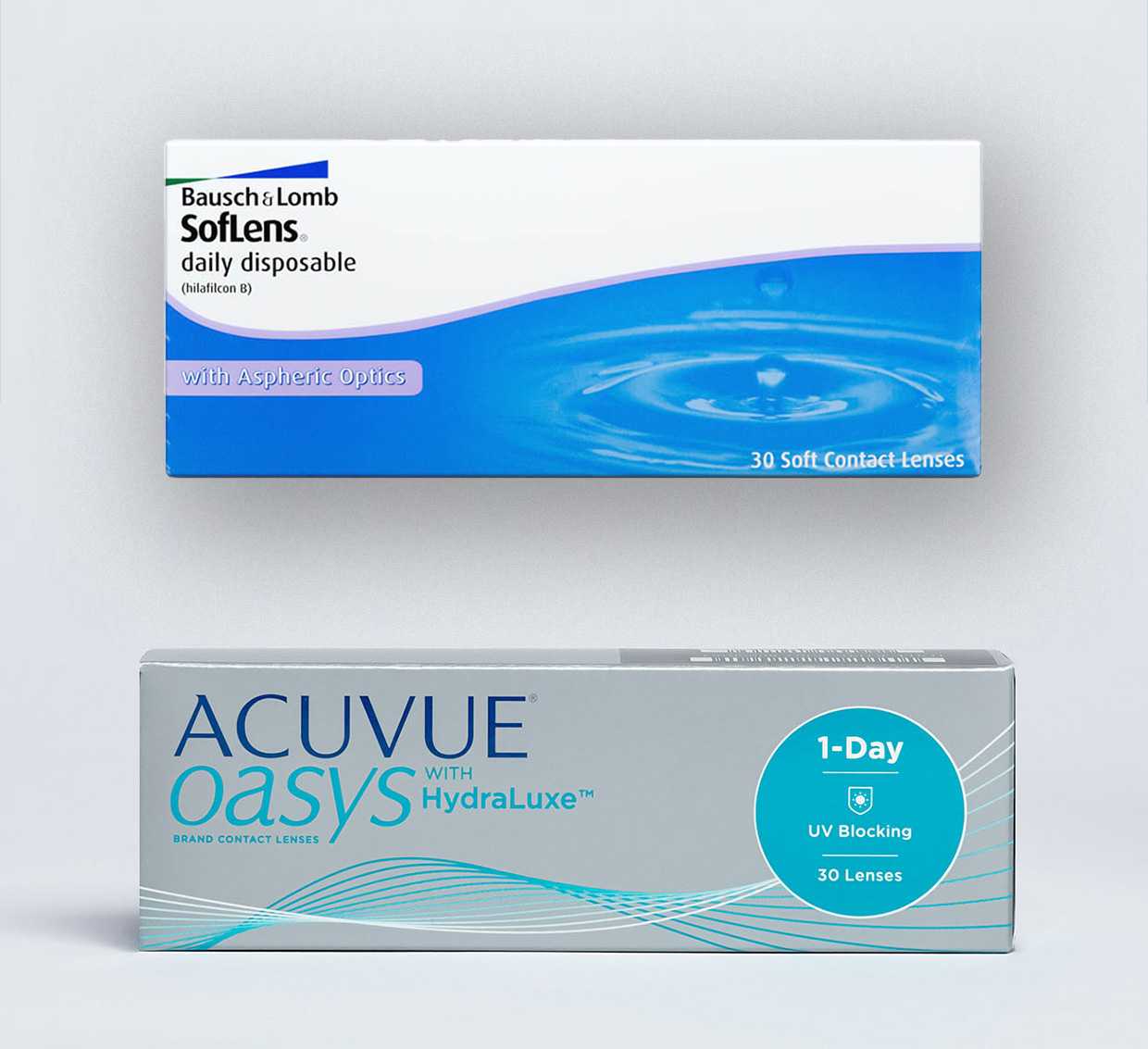 - однодневные линзы, которые являются самым приемлемым вариантом для людей с чувствительный слизистой глаз. Их применение ограничивается использованием с утра до вечера. На следующий день одевается новая пара линз. Производители изготавливают такие линзы по 30 (на месяц) и более штук. Ухода они не требуют;