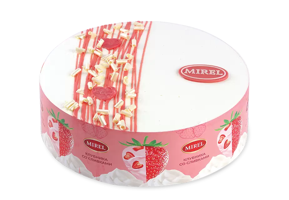 Нарядный торт, который не стыдно поставить на праздничный стол. Сочетание белого и розового крема с незначительными вкраплениями зеленого (листочки) и яркий клубничный аромат, исходящий от изделия, создают праздничную атмосферу. Внутри розовые бисквитные коржи, слегка влажные от пропитки, прослоены нежным сливочным кремом. На нижнем корже покоится слой настоящей клубники, чей вкус оттеняет сладость крема и бисквита.