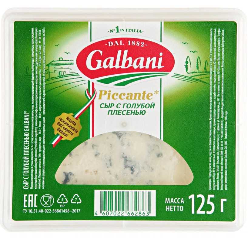 Производитель утверждает, что данный продукт изготовлен по итальянской рецептуре с сохранением всех тонкостей приготовления. Состав достаточно прозрачный и хороший, используется один вид плесени. По отзывам, обладает насыщенным вкусом немного полежалых грибов и таким же специфическим, но привлекательным ароматом. По структуре, немного рассыпчатый при нарезании, липнет к ножу, как и положено для такого сыра. Хорошо подходит к винам, сырным нарезкам, а также для добавления в различные блюда. Цена за 125 грамм без скидок — около 400 рублей.