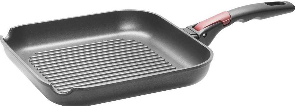 Ручка. Если вы хотите использовать сковороду-гриль не только на плите, но и в духовом шкафу, то отдайте предпочтение моделям со съемной или монолитной ручкой. Это также существенно облегчит хранение.