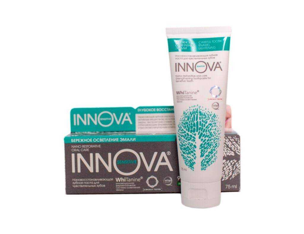 - Innova Бережное осветление эмали – формула нано компонентов для укрепления и осветления, профилактика кариеса и кровоточивости;