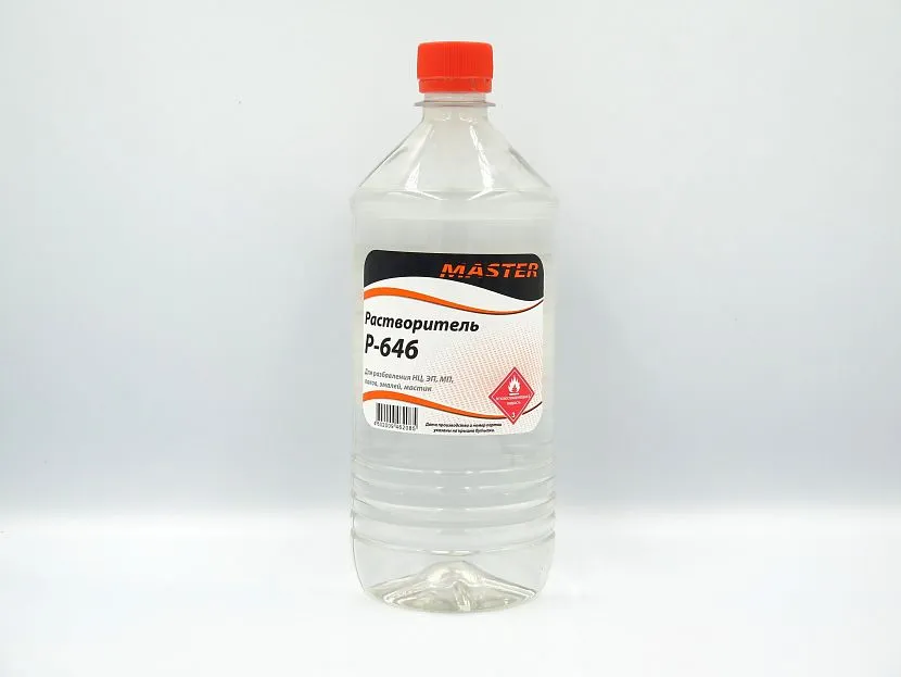 Помните, что растворитель 646 является пожаро- и взрывоопасным продуктом. Работать с ним можно только в средствах защиты органов дыхания, зрения и кожи. При проведении работ в помещении необходимо обеспечить поступление свежего воздуха через окна и двери или посредством работающей вытяжной вентиляции.