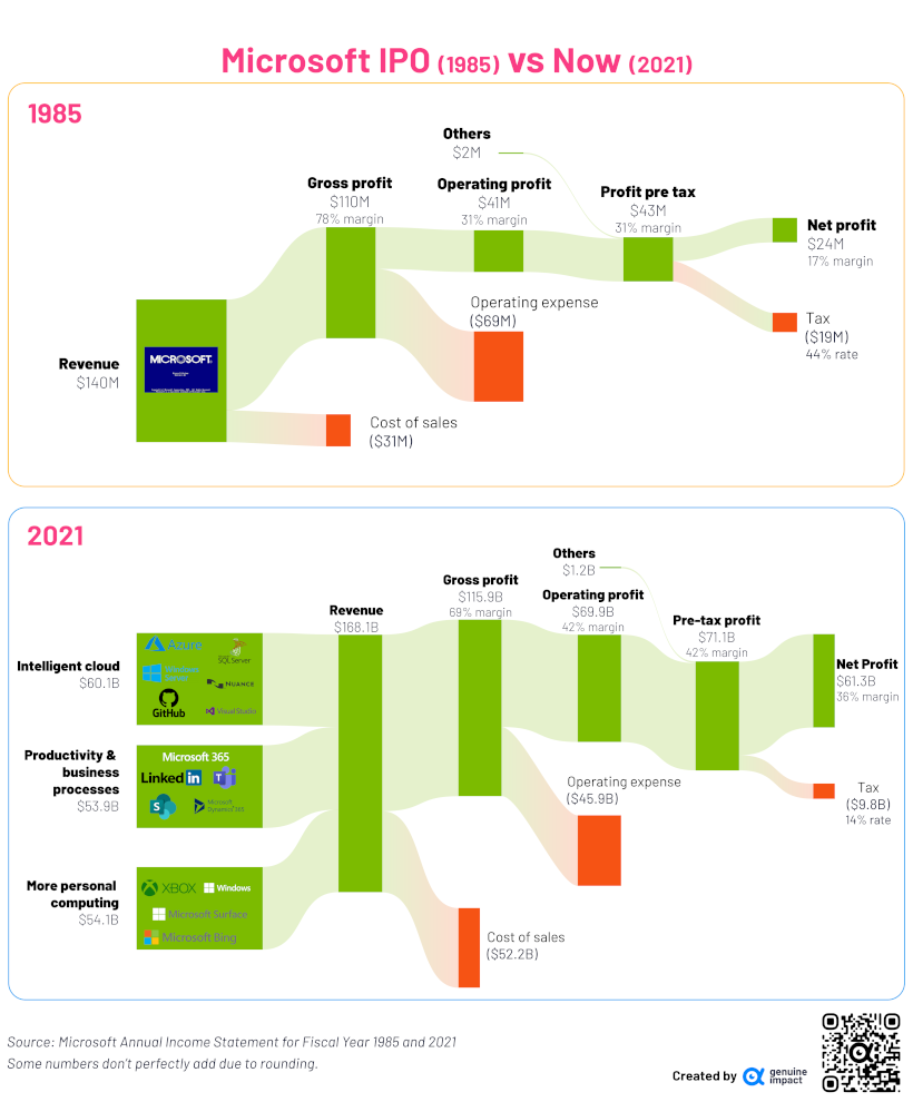 Now, its revenue streams are split fairly evenly between its cloud service (Azure), productivity tools (Office), and personal computing (Xbox and Windows OS).