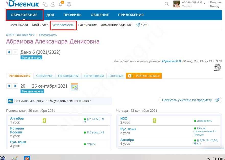 Здесь отображаются данные за последнюю неделю (по умолчанию, вы сами можете выбрать отчетный период). Можно посмотреть информацию о расписании, домашних заданиях, полученных оценках и, конечно, посмотреть прогулы.
