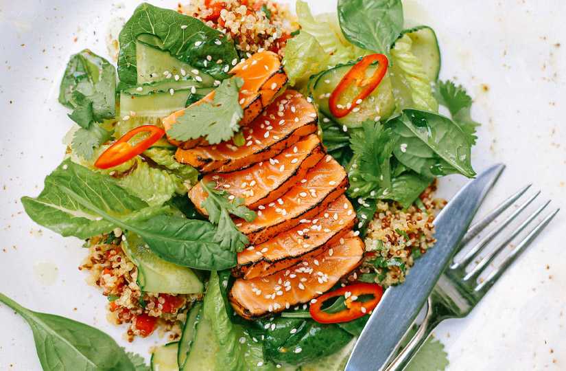 - Идеальным блюдом для тех, кто любит рыбу, но сидит на диете станет семга . Ее энергетическая ценность составляет всего 130-140 калорий. Из семги получится отличный диетический суп. Семга хорошо сочетается с различными овощами, что делает ее незаменимой в рыбном меню.