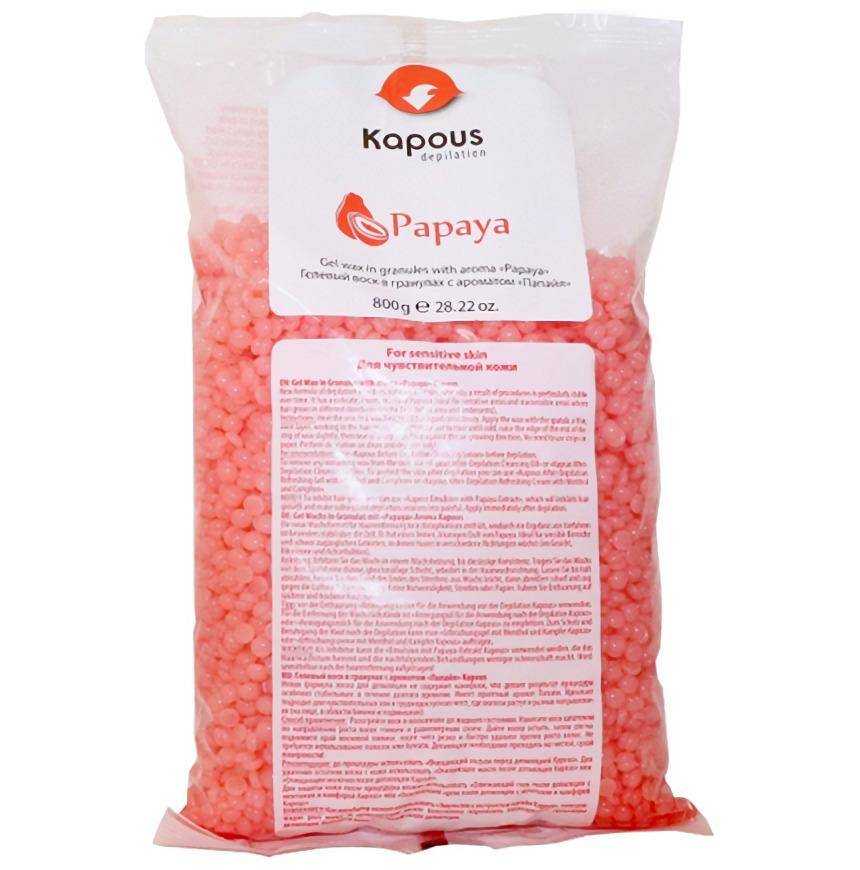 Следующую строчку рейтинга занимает продукт для депиляции итальянского производства, он выгодно отличается от остальных представителей высоким качеством и инновационной формулой, обеспечивающей легкий эффект пилинга. Жирорастворимый воск выпускается в форме картриджей, в которые добавлен тальк, снимающий раздражение после процедуры депиляции. Состав средства полностью натуральный: пчелиный воск, растительные экстракты и масла. Продукт от Kapous Professional идеально подходит для удаления волос на чувствительной коже.