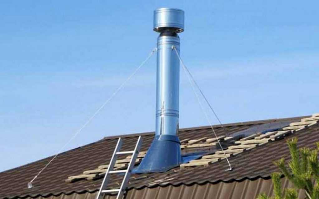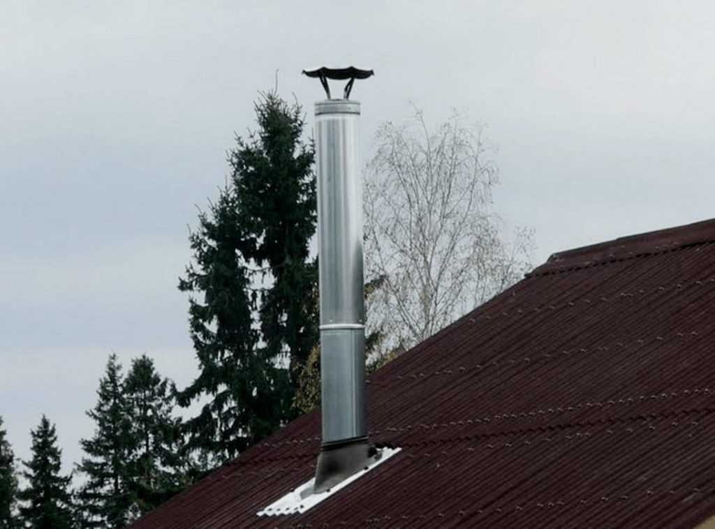 - дымоход должен быть не ниже полутора метров от конька дома, который стоит рядом. Если дымоход выше кровли, более чем на метр, то нужно установить дополнительные растяжки;