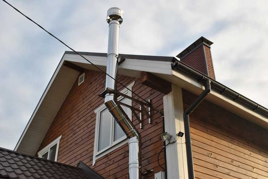 Сегодня получили распространение дымоходы, оснащенные двухслойной изоляцией. Это позволило монтировать трубы вне зданий путем их крепления с использованием кронштейнов или металлического профиля. Плюсы данной схемы несомненны, так как ее применение позволяет исключить устройство термоизолированных проходов через перекрытия и кровлю.