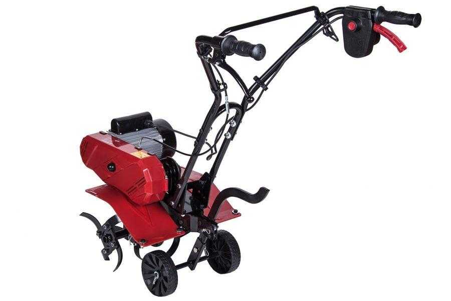 Поскольку устройство мало весит и оснащается достаточно широкими транспортировочными колесами, управлять им легко. Главной отличительной особенностью этого электрического культиватора является то, что в нем установлен синхронный двигатель на 1.8 кВт.
