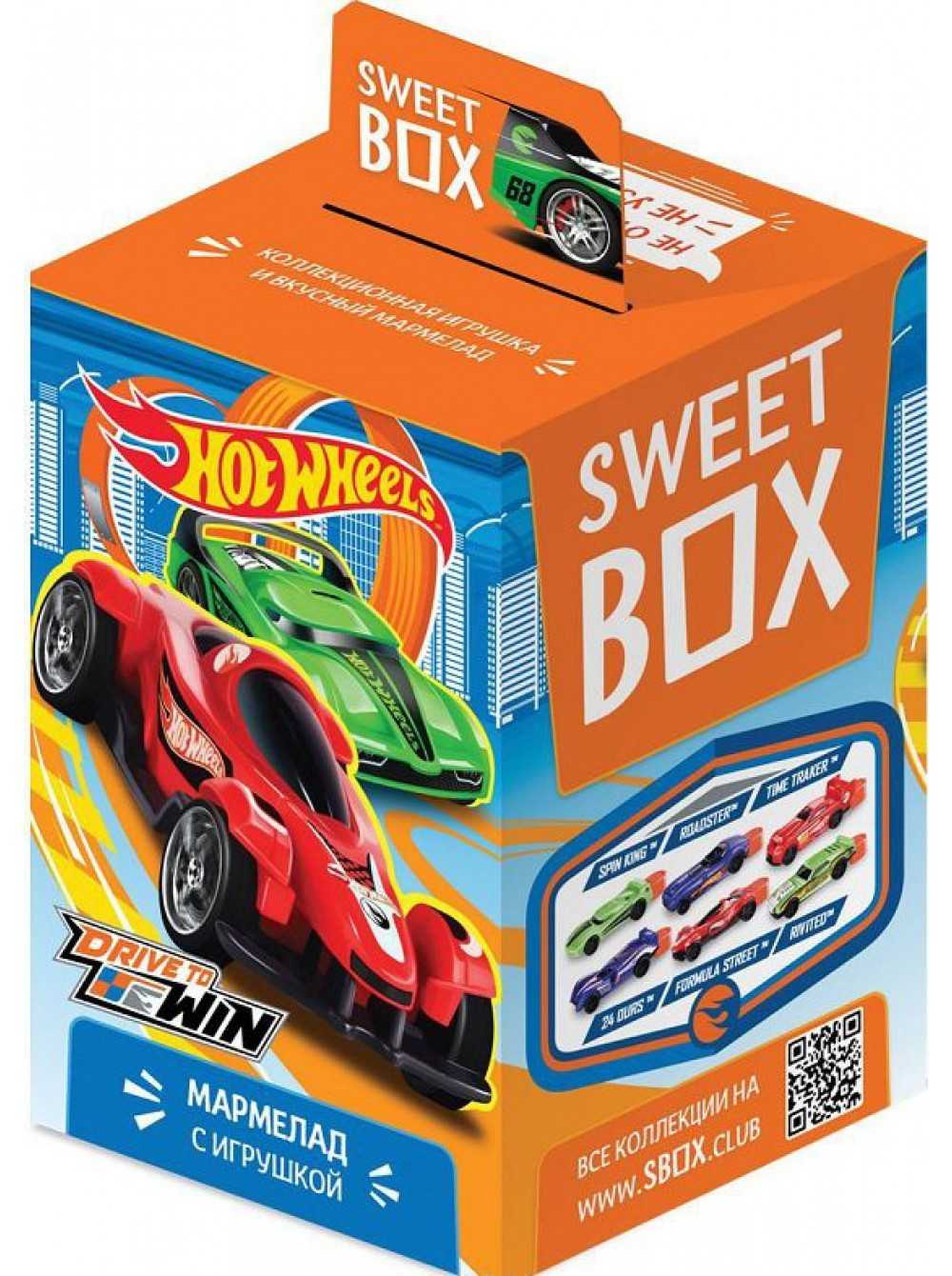 - Sweetbox. Сладкая коробка вмещает в себя сладость и небольшую игрушку. Серии сладкого подарка дифференцированные: Ми-ми-мишки, Маша и Медведь, Тачки, Hot Wheels, Щенячий патруль, Три кота и т.д.