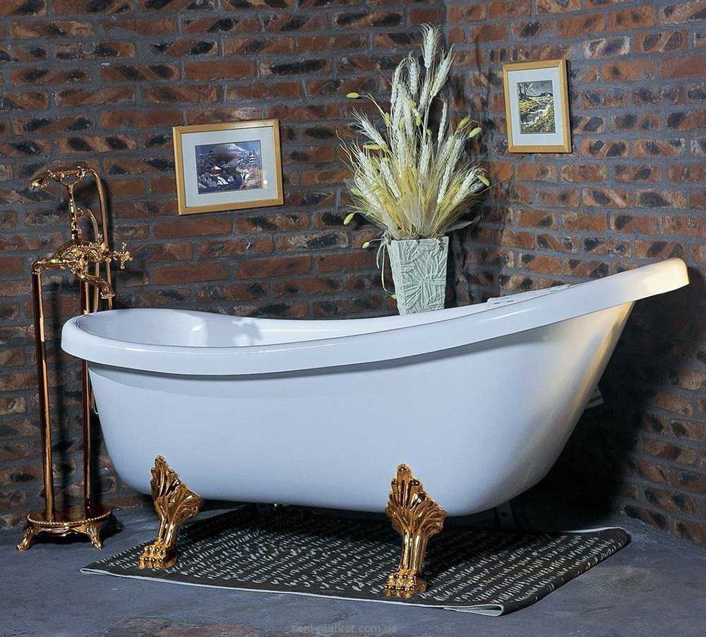 При больших размерах отличается меньшим весом, чем у конкурентов по классу, но для монтажа потребуется бригада из 3 человек. Слив стандартного диаметра расположен в ногах. Вмещает 285 литров воды при глубине 44,5 см. Ножки регулируются по высоте, но приобретаются отдельно.