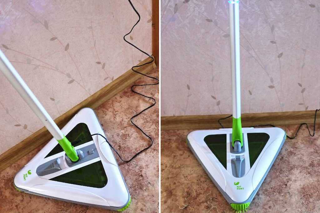 Ровный пол, ковровый ворс средней длины и даже шерсть домашних любимцев – всё это не пугает KT-508 от отечественной марки КИТФОРТ. Примечательно, что эта электрическая швабра-пылесос лишь немногим дороже описанных выше решений, и найти в магазинах её можно по средней стоимости в 2700 рублей. За эту сумму пользователю предлагается качественно собранное устройство с треугольной формой рабочей головки, способное проработать до 45 минут на одном заряде. С учётом того, что уборка средней комнаты обычно занимает не более 15 минут, этого времени покупателям устройства вполне хватит.