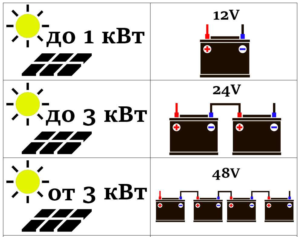 Для мелких электроприборов достаточно 9 В, для зарядки смартфонов и ноутбуков – 12-19 В, а для обеспечения всей энергосистемы дома – 24 В и более.
