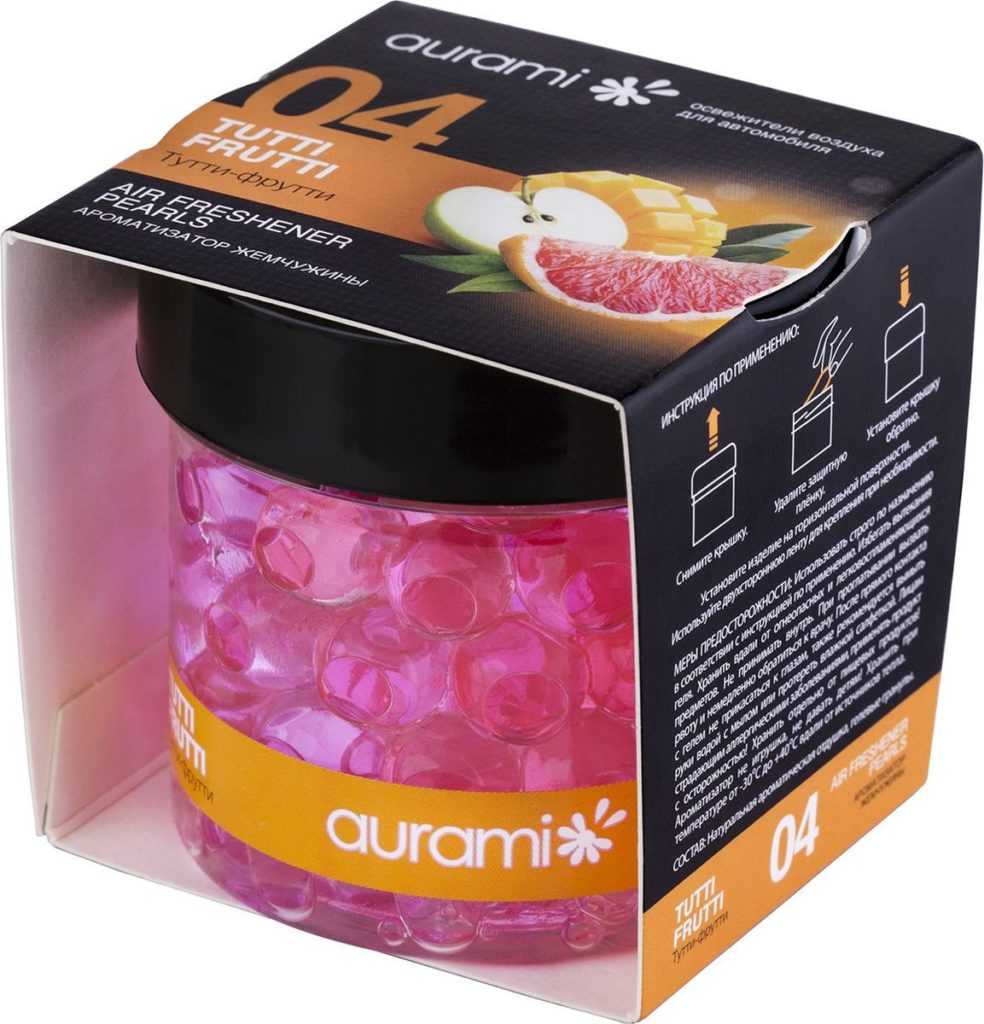 Основная масса гелевых ароматизаторов состоит из пластмассовой или стеклянной ёмкости, крышки с несколькими отверстиями и геля, который испаряется и распространяет аромат по всему салону.