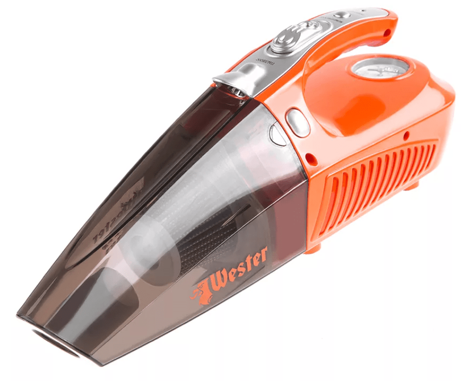 Еще один универсальный инструмент, но все его функции используются исключительно для автомобиля. Пылесос предназначен для сухой уборки. Wester CVC-80 грязь и пыль собирается в прозрачный бокс, вместимость небольшая — всего 0,2 л. Зато есть встроенный манометр и компрессор, которые помогут решить проблемы с давлением в шинах, подкачать или спустить их до нужного состояния. Неплохая комплектация: сумка для хранения, несколько видов щеток, шланг и насадки для накачивания. Данная модель станет настоящей находкой для автомобилистов, которые ценят универсальность. Пылесос весит 1,45 кг, компактный и не занимает много места в багажнике.