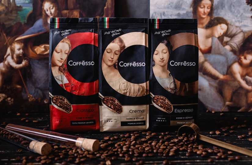 Бренд предлагает три разных бленда зернового кофе, среди которых высокий покупательский рейтинг имеет Coffesso Classico, созданный на основе 100% премиальной арабики из Южной Америки и Африки. Его главные характеристики – плотность, небольшая кислинка и яркий аромат.