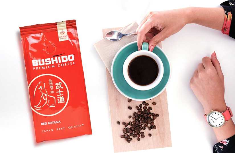 «Бушидо» – еще один кофейный бренд компании «Кофейный Дом «ХОРСЪ», производство которого находится в Нидерландах и Швейцарии. Выбор зернового кофе состоит из четырех сортов чистой арабики (только премиум и спешелти). Особым спросом среди покупателей пользуется Bushido Red Katana – мягкий, с полным вкусом и сильным ароматом. В переводе с японского «бушидо» означает «кодекс чести самурая».
