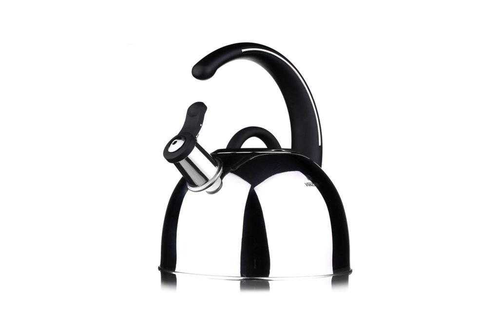 Кухонная утварь серебристого цвета объемом 2,8 л выполнена из стали, а ручка из материала, противостоящего скольжению. Подходит для всех видов плит, включая индукционные. Адаптирован как к ручной мойке, так и в посудомоечной машине. Чайник обладает стильным дизайном, легко вписывающимся в интерьер кухни. Стоимость – 2 700 руб.