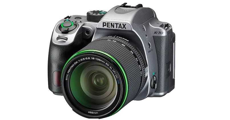 Pentax K-70 Kit — экземпляр с оптимальным соотношением цена/качество для новичка за 52 000 рублей. За счет подвижной матрицы обеспечивается стабилизация и резкость фото. Есть поворотный дисплей, а корпус защищен от влаги и пыли. Способен делать до 6 фото в секунду.