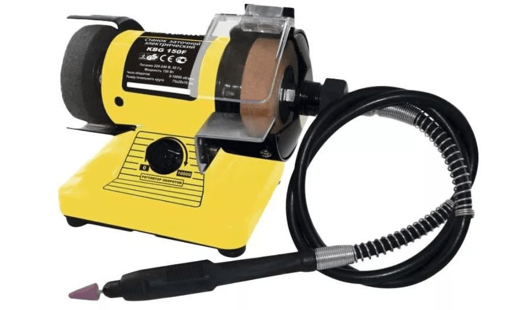 Компактная модель точильного станка для дома или гаража Kolner KBG 150F позволяет поддерживать остроту ножей, подравнивать металлические детали, болты и т. д. Помимо заточки, шлифовки и полировки с помощью этого устройства можно выполнять гравировку, сверлить отверстия. Для каждого режима можно подобрать оптимальную скорость вращения дисков. Для выполнения работ точило оснащено двумя шлифовальными дисками, двумя насадками для нанесения гравировок, гибким валом.