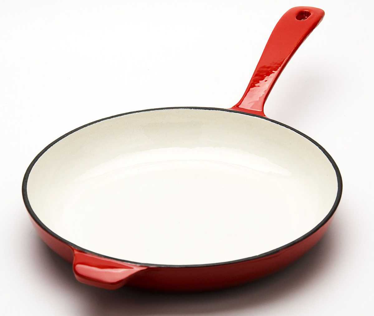 Эмалевая сковорода позволяет обжаривать продукты с минимальными условиями и опытом.