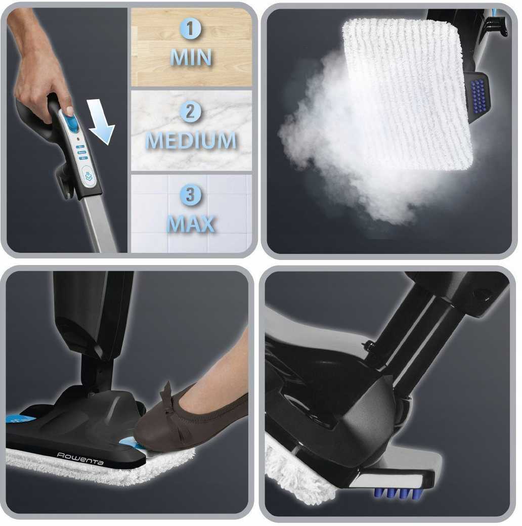 Большинство моделей имеют возможность регулировки уровня пара. На максимуме паровые швабры способны обрабатывать поверхности паром, имеющим температуру до +130 градусов. Но далеко не каждому материалу такая температура подойдет. Поэтому возможность регулировки — отличный способ расширить функционал устройства. В целом же такую швабру разрешено использовать на напольных покрытиях почти любого типа, а также для очистки мебели, стекол и зеркальных поверхностей.