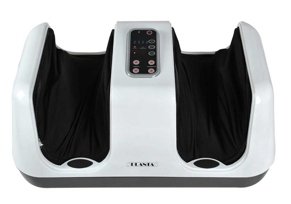 Массажный прибор комплексно воздействует на стопы воздушными подушками и роликами, поддерживает пять программ и три режима интенсивности. Отличается особенно плотным прилеганием рабочих элементов к ногам, захватывает, в том числе пятку.