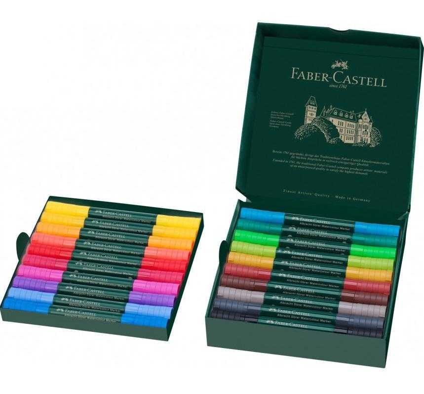 Немецкий набор из 20 профессиональных акварельных фломастеров на водной основе. Подходит маркер для скетчинга, смешанных техник, полноформатных работ. Высоко пигментированные, светостойкие чернила не просачиваются сквозь бумагу.