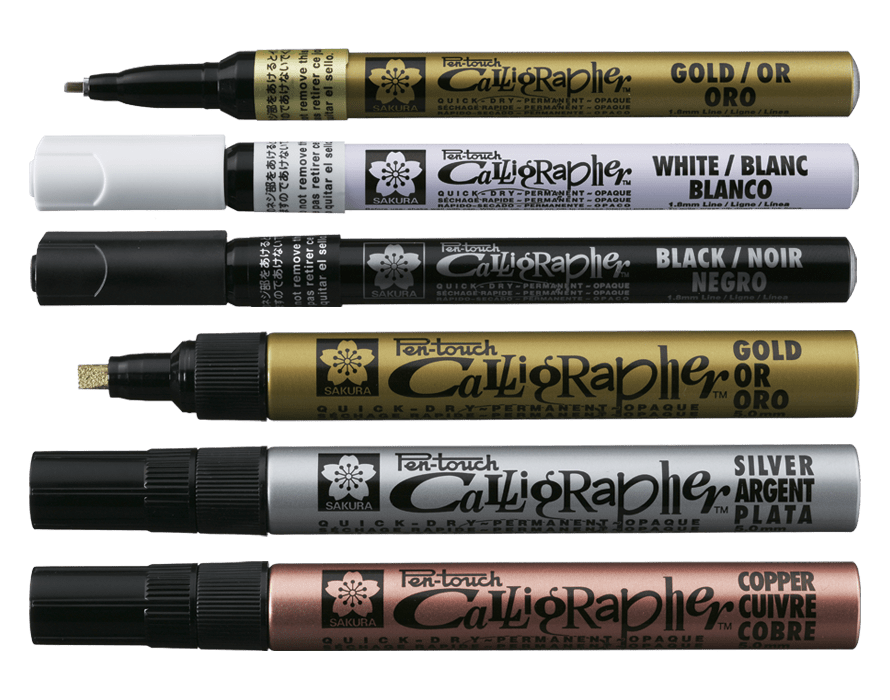 Инструменты двухсторонние, с одной стороны перо в виде толстой кисти, подходящей для занятий латтерингом и письмом. Второй наконечник пуля для прорисовки мелких деталей и создания тонких и четких контуров. Линии и рисунки, изображенные маркером, можно размывать на бумаге, тем самым, получая новый цветовой эффект.