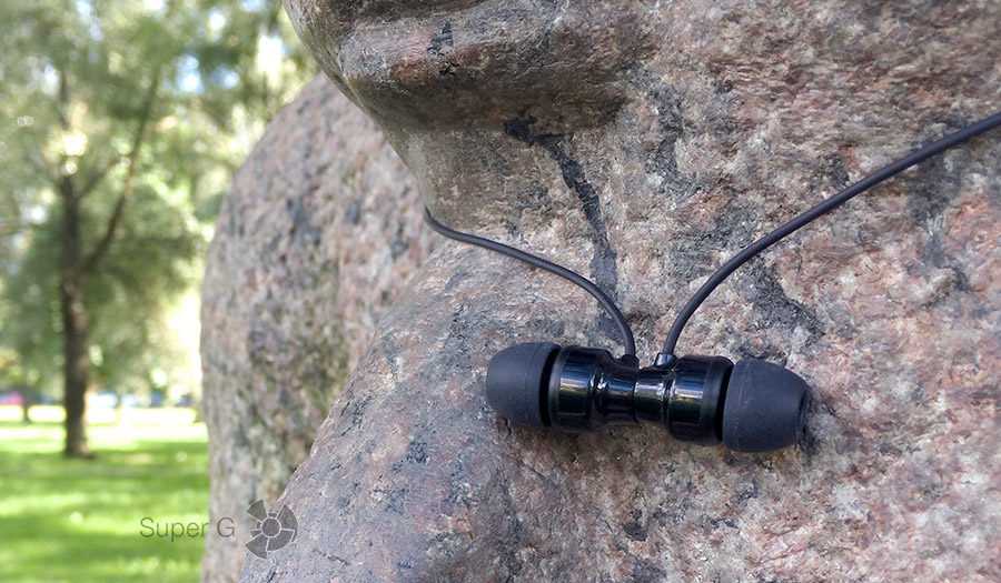 Внутри затычек — магниты. Если вынуть наушники из ушей, то они не болтаются в разные стороны при ходьбе, а более-менее спокойно лежат на груди.