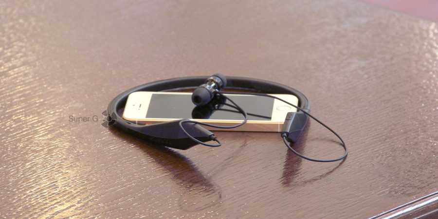 Если вынуть наушники из ушей и оставить свободно болтаться на груди, они моментально «склеятся» благодаря расположенным внутри них магнитам.