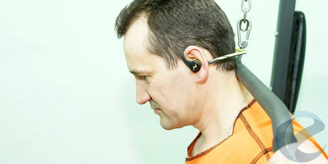 Есть, конечно, у гарнитуры и свои особенности. Они больше подходят для занятий бегом, велосипедом,зимними видами спорта, а такжефитнессом или аэробикой. Но вот, как оказалось, для хардкорного тренинга с «железом»это — не лучший вариант. На жиме штанги лежа они порой вываливаютсяиз ушей, а на приседаниях со штангой и на некоторых тренажерах цепляютсясвоим кабелем. Ну атренировать мышцы рук с закрепленным чехлом просто неудобно.