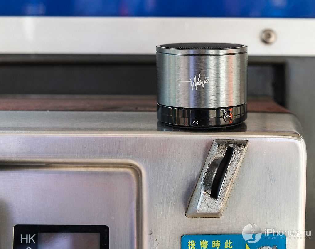 После этого Wave Bomber легко подключился и к iPhone, и к MacBook. При желании аксессуар можно использовать в качестве спикерфона и отвечать на звонки. Тут никаких откровений — обычный всенаправленный микрофон, стандартная функциональность.
