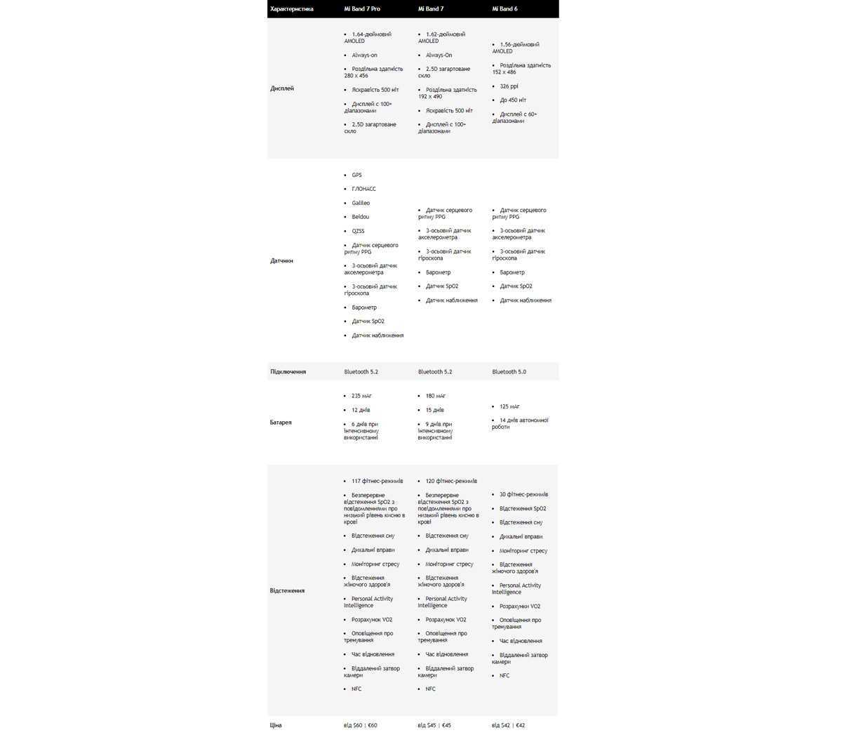 - Сравнение Mi Band 7 | Mi Band 7 Pro | Mi Band 6