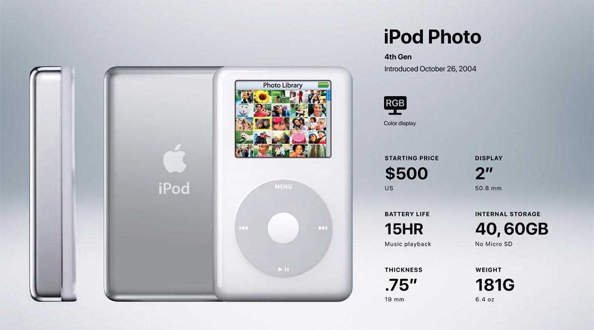 - iPod четвертого поколения и iPod Photo. 2004 год