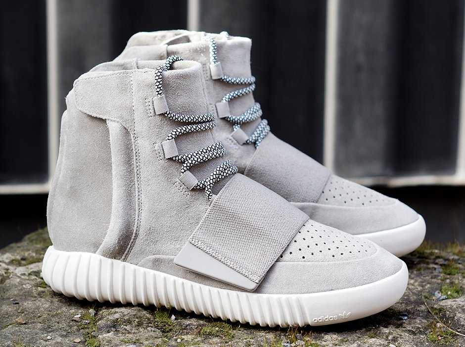 - модель Yeezy Boost 750 – вышла в небольшом количестве в 2015 году. Многие хотели ее приобрести, поэтому дефицит на этот модельный ряд был огромным. Кроссовки имеют два варианта исполнения: серо-белого и черного цвета. Материал верха обуви – замша, а перед оснащен хлястиком. Подошва на основе резины снабжена амортизированной системой;