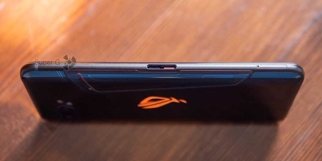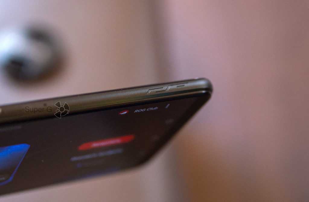 ROG Phone 2 имеет разъем для наушников с 24-разрядным ЦАП и не менее двух портов USB-C — один снизу и один справа (когда телефон находится в портретной ориентации). Есть также кнопки регулировки громкости и питания на правом краю.