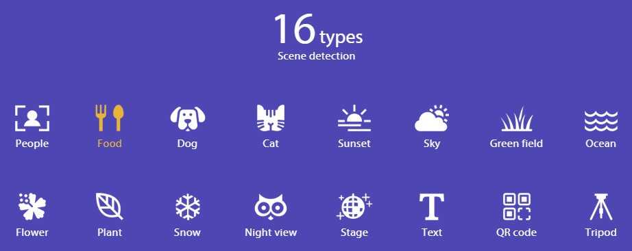 Изначально стоит отметить, что они функционируют в камере – распознают картинку и могут установить необходимые настройки из 16 имеющихся сцен, а также в режиме портрета.