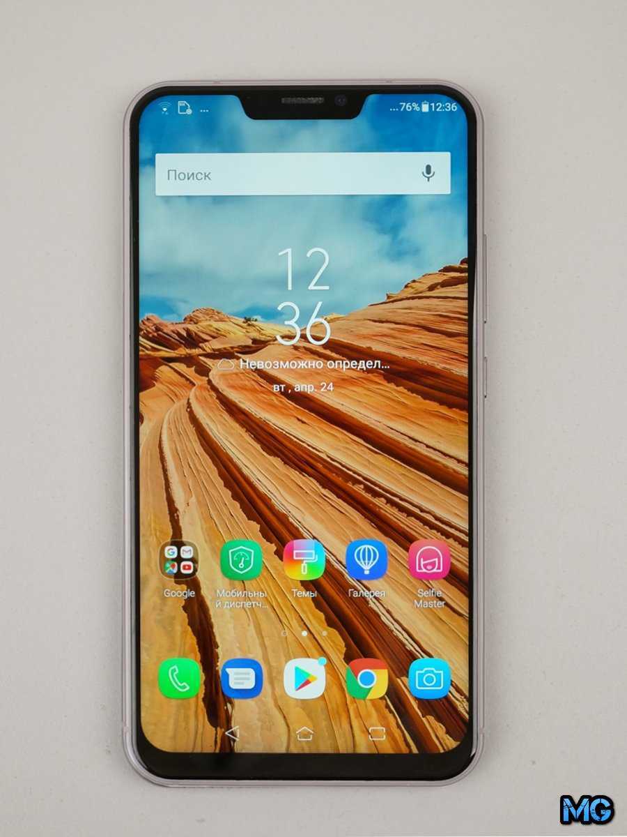 Отдельного внимания заслуживает реализация работы телефона с «монобровью», поскольку родная поддержка будет реализована только в Андроиде девятой версии. Инженерам компании удалось сделать выступ меньше, чем в iPhone, однако значки уведомлений здесь больше. Как результат – слева от «брови» помещается всего несколько значков, схожая ситуация и с противоположной стороны.