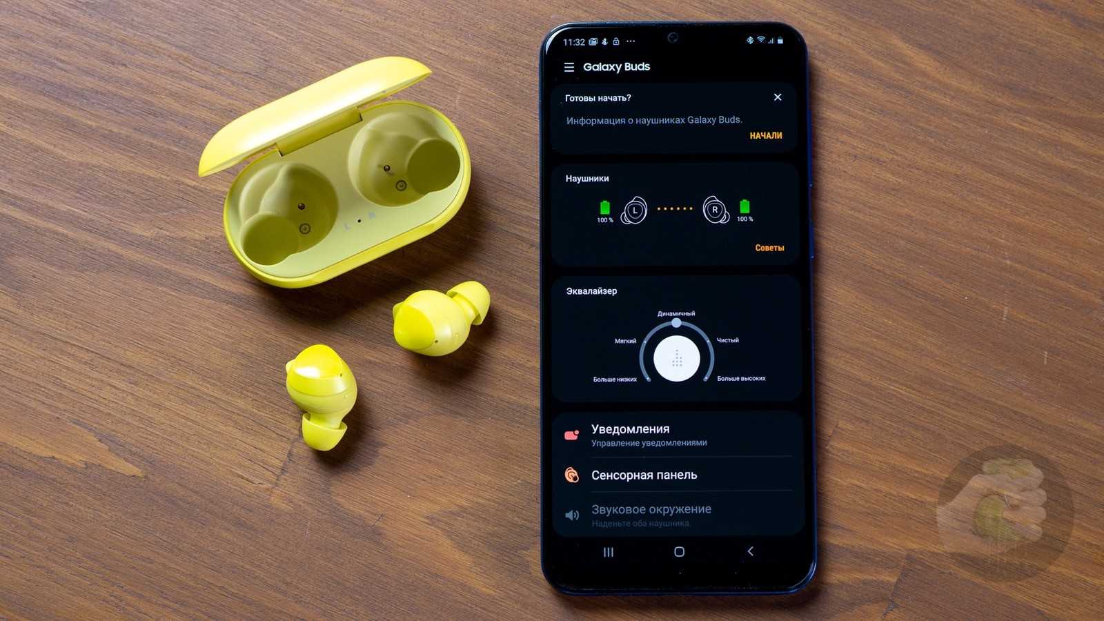 Я тестировал работу наушников в паре с Samsung Galaxy A50. Подключение к телефону идёт сразу после того, как открываете чехол для наушников. Встроенное приложение определяет новый аксессуар, тут же предлагает скачать новую прошивку и обновить софт.