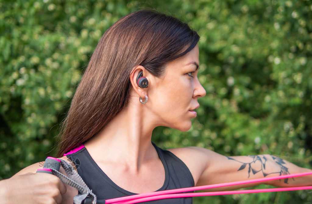 Доступный в черном, синем, оранжевом или белом цвете, здесь спортивный дизайн. Внешние панели наушников украшены логотипом UnderArmour, а каждый наушник снабжен мягкими силиконовыми ребрами для дополнительной стабилизации. Ласты и ушные вкладыши сочетаются для особо надежной посадки для людей с маленькими и средними ушами. Я нахожусь посередине, и при быстрой прогулке я чувствовал себя достаточно надежно, но для интенсивных упражнений я, вероятно, выбрал бы пару побольше. Для маленьких ушей они должны быть идеальными, и они поставляются с тремя парами ушных вкладышей (в XS-M) и тремя парами наушников, чтобы они идеально подходили.