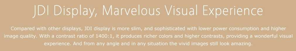 По сравнению с другими дисплеями, дисплей JDI имеют более тонкую и сложную конструкцию с более низким расходом энергии и более высоким качество изображения.