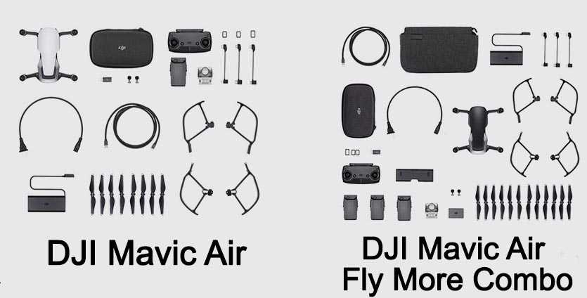 В базовом комплекте есть пульт управления, зарядное устройство, съемная защита, запасные лопасти и кейс для переноски. Расширенный Fly More Combo комплект дополнен парой батарей и большим набором лопастей на замену. Еще есть хаб для последовательной зарядки аккумуляторов, сумка для переноски всех аксессуаров и адаптер, превращающий батарею дрона в PowerBank для зарядки смартфона.