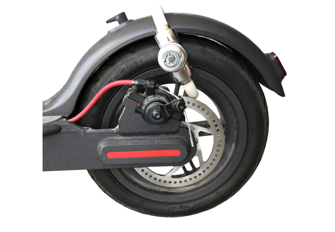 на электросамокате установлена передняя рекуперативная тормозная система, а также имеется дисковой задний тормоз, поэтому пользователь сможет в любой момент времени резко остановиться, причем даже при движении на высокой скорости;