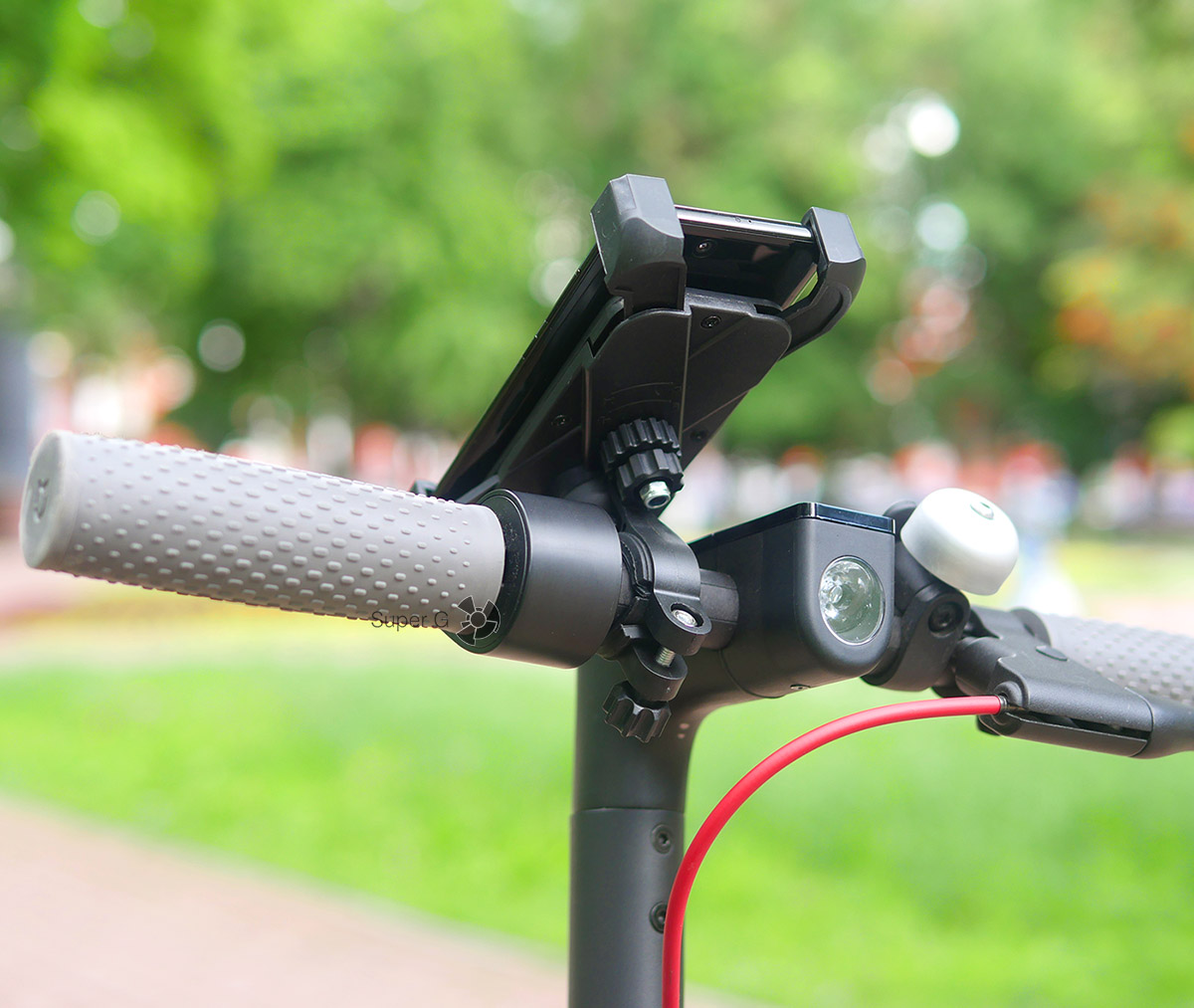 Также на руле находится источник света – фара мощностью 1.1 Вт. В темное время суток световой поток покрывает около 6 метров перед самокатом, чего достаточно для комфортной езды.