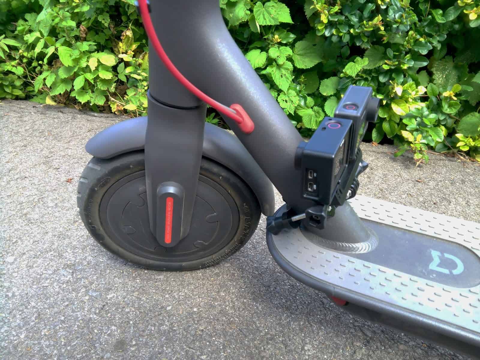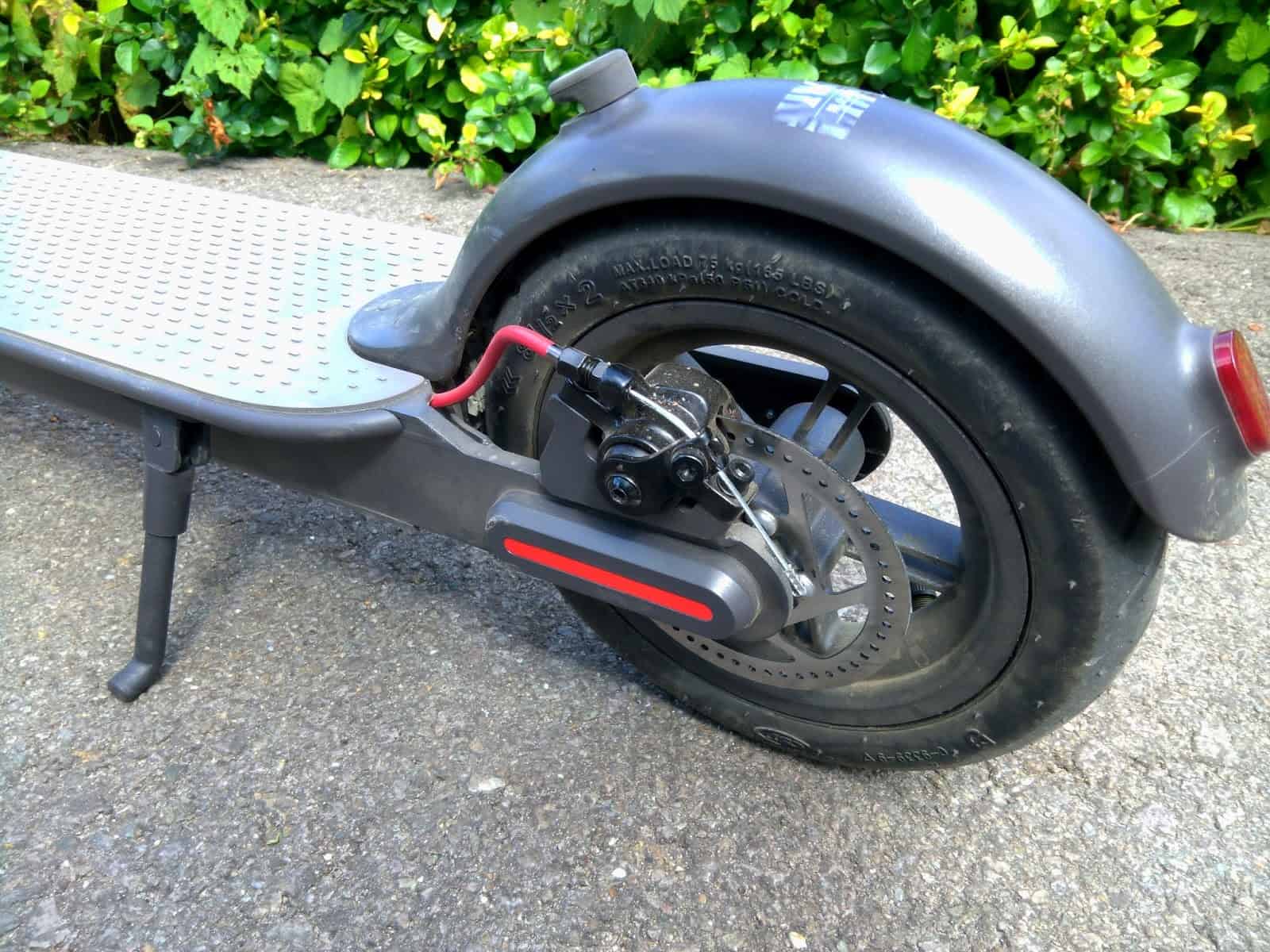 Широкие колёса диаметром 255 мм оснащены бескамерными шинами, которые частично компенсируют отсутствие подвески. Благодаря широким покрышкам, ездить очень комфортно. Есть задний механический дисковый тормоз, передний электронный с E-ABS и рекуперация энергии BMS, подражающая батарею во время движения.