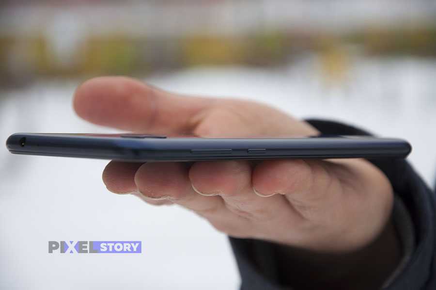 В руке смартфон ощущается хорошо, габариты немного огорчают, при таком разрешении экрана можно было ограничиться 6 дюймами и уменьшить размеры корпуса.