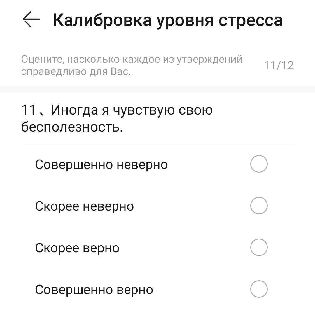 Не самая обычная штука: прежде чем запустить определение стресса, вам потребуется ответить на вопросы специального опросника. Например, вот такой: