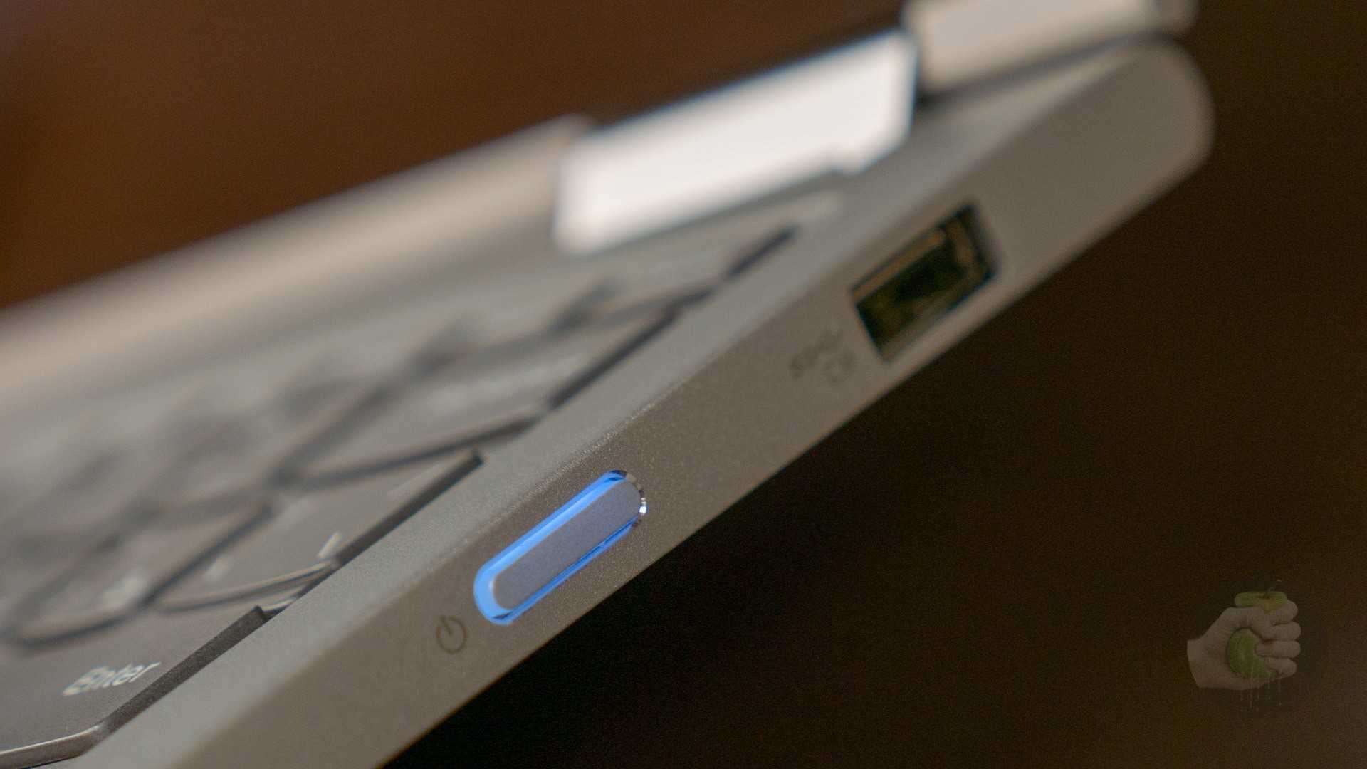 Маленький дактилоскопический датчик красуется справа от тачпада, прямо под клавишей со стрелкой. Работает он почти молниеносно: после того, как палец оказался на поверхности сканера, ноутбук активируется максимум через 1-2 секунды. Некорректной работы и ошибок считывания я не заметил. Добавить и настроить дактилоскопию можно в меню «учётные записи» — там потребуется зайти в раздел «параметры входа».