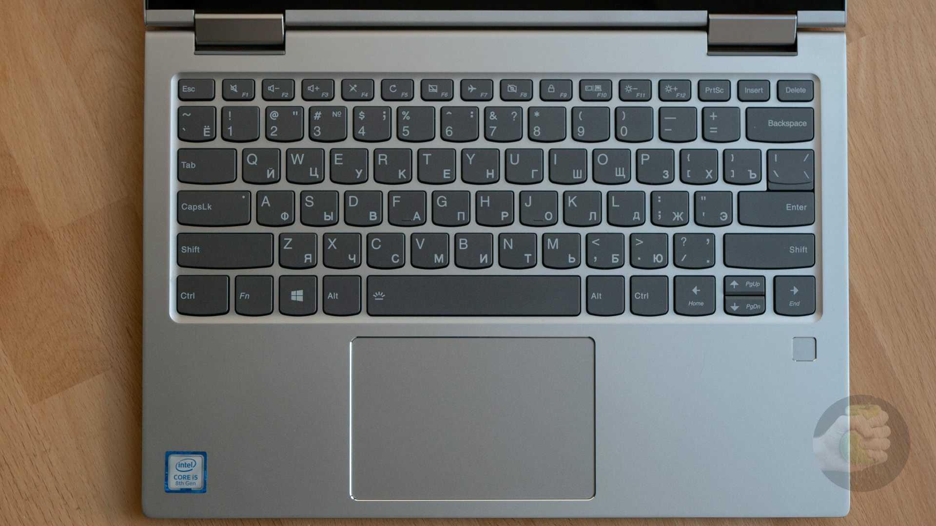 Клавиатура выполнена в классическом для Lenovo виде под названием AccuType. Компоновка клавиш неплотная, поэтому риск ошибочного нажатия невелик. Кнопки квадратные, внизу закругленные, маркировка белая. Не обошлось без подсветки, поэтому печатать можно в условиях плохого освещения или его отсутствия. Клавиши нажимаются без усилий, с негромким щелчком. У них средний ход и отличная отдача. Раскладка стандартная, не требует привыкания. Кнопка однорядная, обе – крупные, так же, как и , . Набирать текст удобно, руки не устают даже после целого рабочего дня. Еще один плюс – всегда прохладная рабочая зона. Единственный минус: это кнопки со стрелками «вверх» и «вниз»: их сделали какими-то чересчур узкими, так что порой вместо одной нажимаешь другую, а иногда — обе сразу. Гладкий тачпад крупного размера имеет четкие границы, поэтому его легко найти вслепую. Сенсорная панель имеет поддержку multi-touch, и это значит, что мышка вам может и не пригодиться. Двумя пальцами можно прокручивать страницы вверх и вниз, тремя — открывать окошко запущенных программ. Правее от тачпада расположен сканер отпечатка пальца, который защищает данные на устройстве от посторонних глаз.